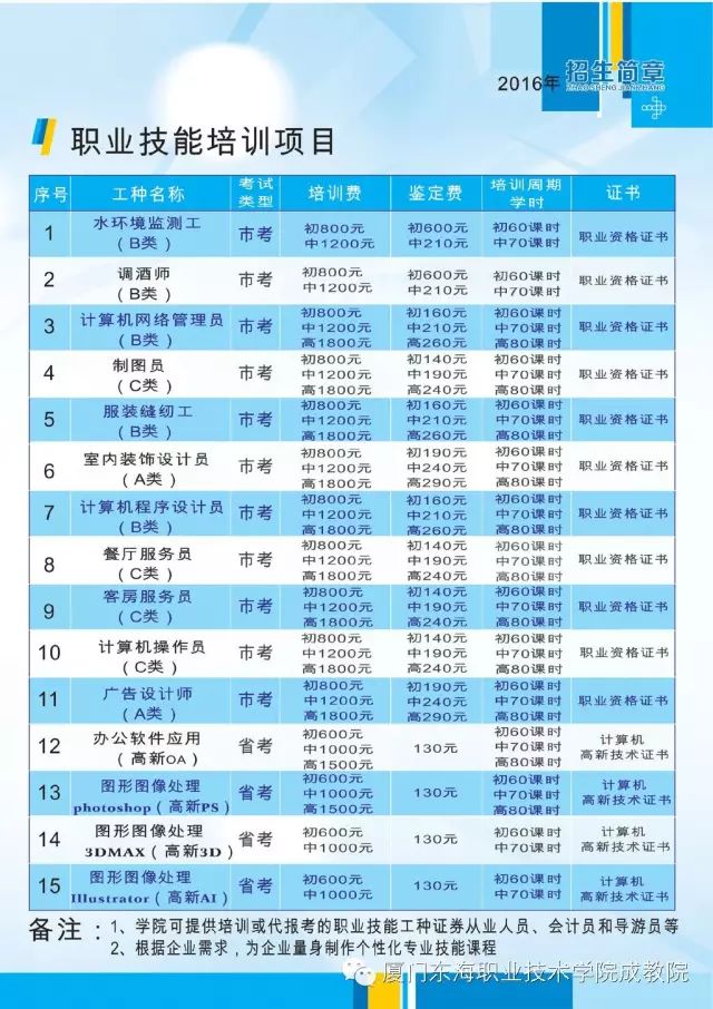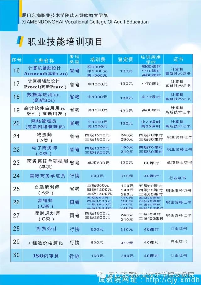 2016厦门东海成人教育学院教育培训简章