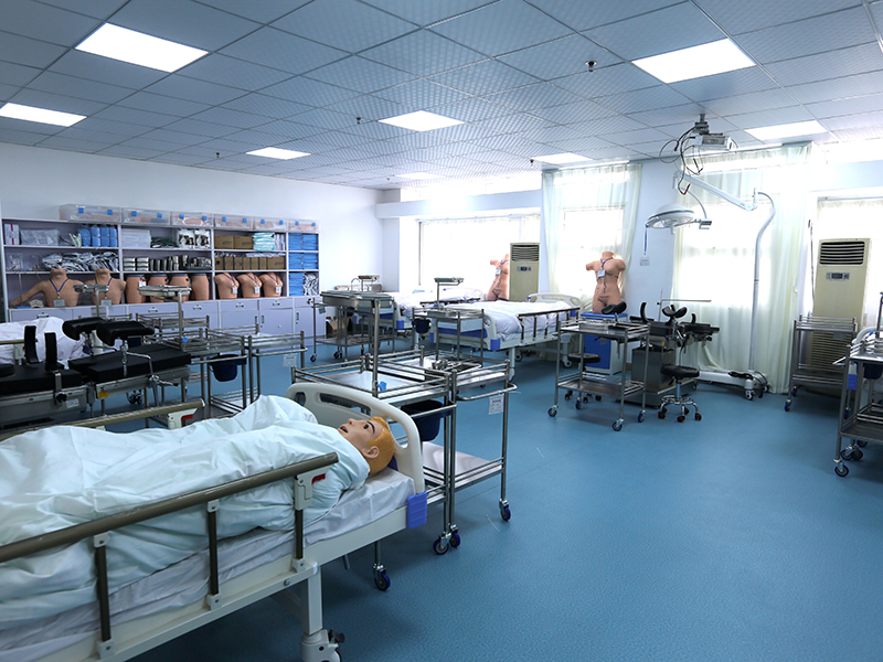 实训室主要设备有:手摇式病床、无影灯、手术台、换药车、治疗盘、胸腔闭式引流护理模型、瘘管造口术护理仿真模型、多功能创伤护理模型、局部创伤模型、多技能外科训练组合模型、外科缝合包扎展示模型、打结训练模型、缝合练习模型、乳房自检模型、外周穿刺中心静脉插管操作模型、手术器械等;