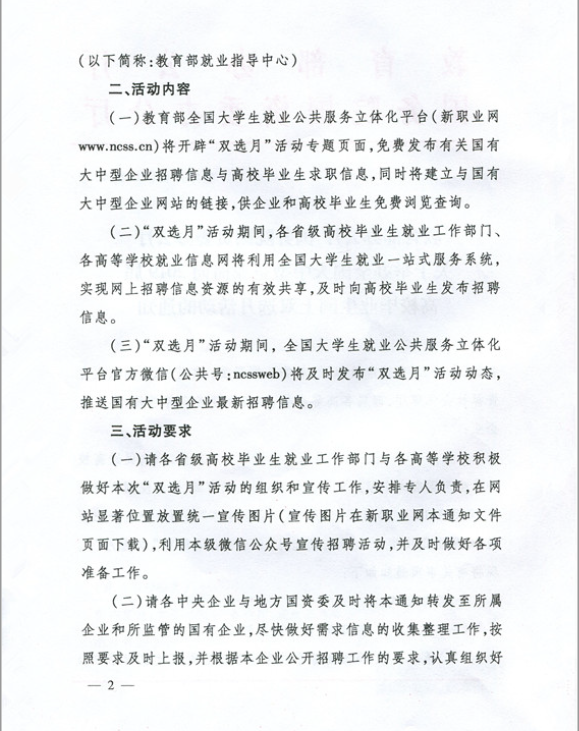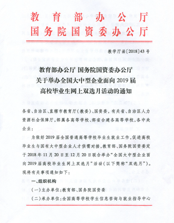 转发关于举办全国大中型企业面向2019届高校毕业生网上双选月活动的通知