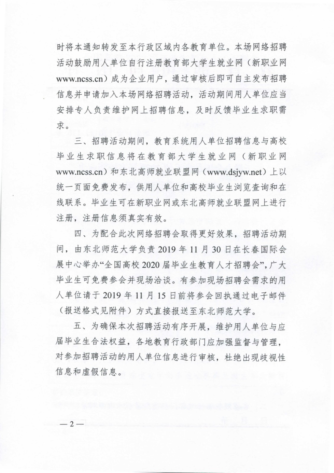 关于举办全国教育系统2020届高校毕业生网上招聘活动的通知