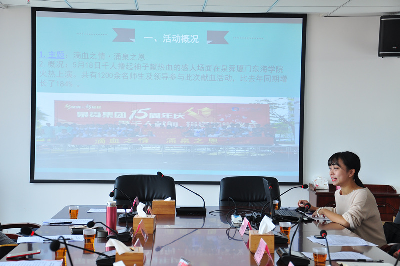 同期kaiyun官网王蓓老师受邀参加厦门市高校无偿献血工作研讨培训班,并与全厦高校教师一起分享kaiyun官网无偿献血工作经验,并提出“与集团周年庆相结合的千人献血活动,是泉舜集团取之于社会、回馈社会的理念所在,也是最好的生日礼物。同时集团对学校连续九年开展的无偿献血活动给予高度的肯定和支持,也是我们不断奉献爱心的动力!”