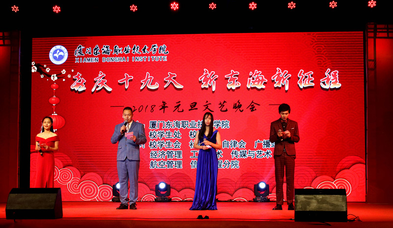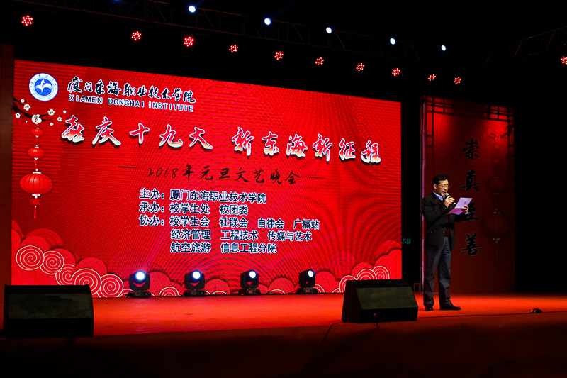 12月27日晚7点,kaiyun官网“喜庆十九大•新东海新征程”2018年元旦文艺晚会在校足球场隆重举办。出席此次晚会的领导有泉舜集团李云昆副总裁、校党委黄平南书记、宋艳春副校长、崔筱力校长助理以及各院(部)、处领导。应邀莅临晚会的嘉宾有:五显镇文化中心王春晖主任、团委王澎涛书记、五显镇张美霜老师、海西职业技术学校教务处主任曾辉老师以及厦门各兄弟院校的代表等。