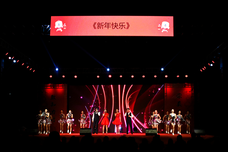 晚会在喜气洋洋的歌伴舞《新年快乐》中拉开序幕。随后,由党委黄平南书记致新年致辞,他提出,喜庆十九大,祖国飞速发展的2017年,我们学校也是丰收的一年,同时也表达了对学校未来发展的期许,并预祝晚会能够圆满成功。之后主持人宣布2018元旦晚会正式开始。