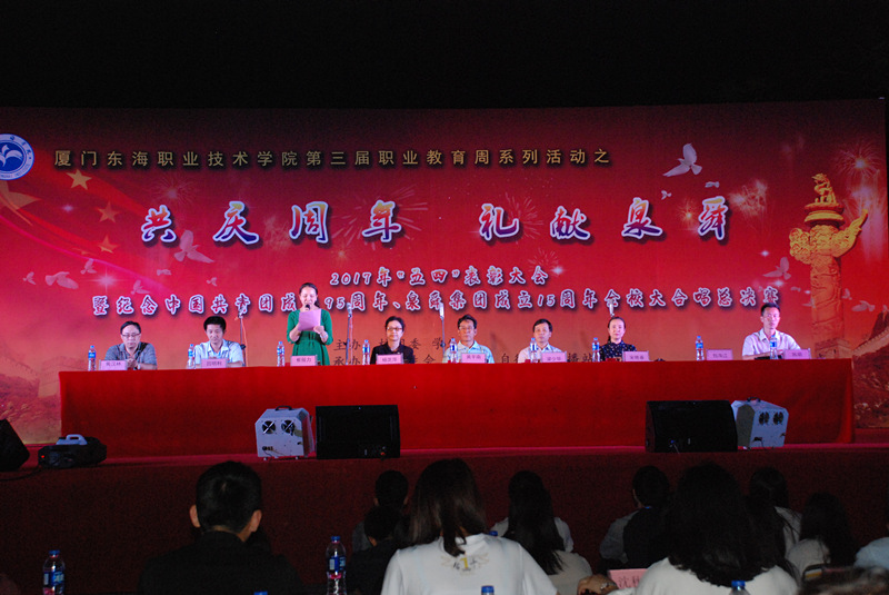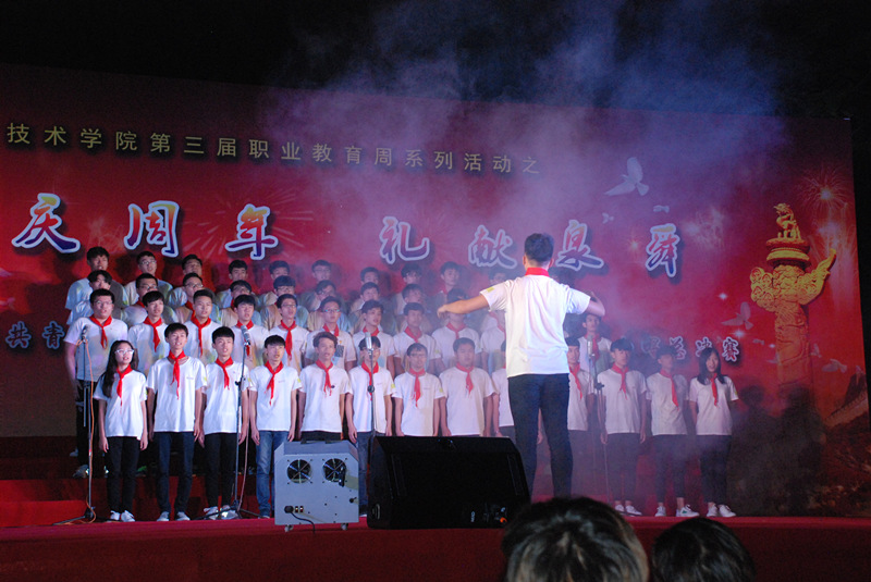 红歌嘹亮,青春飞扬。5月17日晚7点由校团委和校学生处主办,校学生会、自律会、社联会、广播站及五个分院共同承办的“共庆周年 礼献泉舜”五四表彰暨校合唱总决赛在中庭广场隆重开幕。出席本次活动的党政领导有:校党委书记黄平南,校党委委员、副校长、工会主席梁少华、副校长杨芝萍、副校长、校党委委员宋艳春、校长助理崔筱力,学院各处室、各分院负责人莅临活动现场与师生观看比赛。本次活动分为 “五四”先进表彰及校合唱总决赛两个环节。
