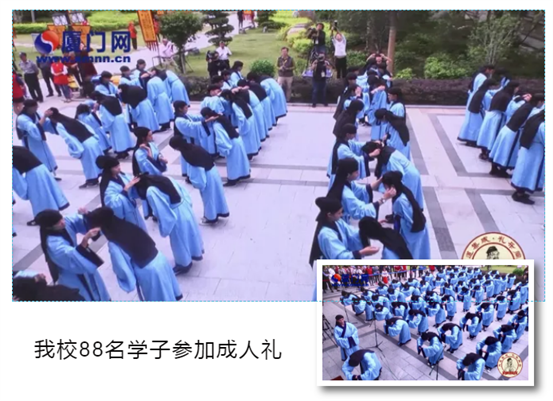 鉴于kaiyun官网师生去年在朱熹绍熙州县释奠仪的出色表现,kaiyun官网今年受邀安排88名学生干部承接成人礼。随着鼓乐声响起,kaiyun官网朱国辉校长带领kaiyun官网88名学子身着汉服肃穆而立。在众人的见证下,担任主礼官的朱校长陪同受冠者、加冠、行醮子礼、赐字,以这样传统的方式步入成人的行列。同时,其他两所学校两个分会场各有400名学子,参与此次成人礼。此次活动共计888名学生纪念朱熹诞辰888周年。这场成人礼主要以朱子《家礼》所记载的冠礼为蓝本,根据现代推广需要改良而来,让朱子成人礼重放光彩。