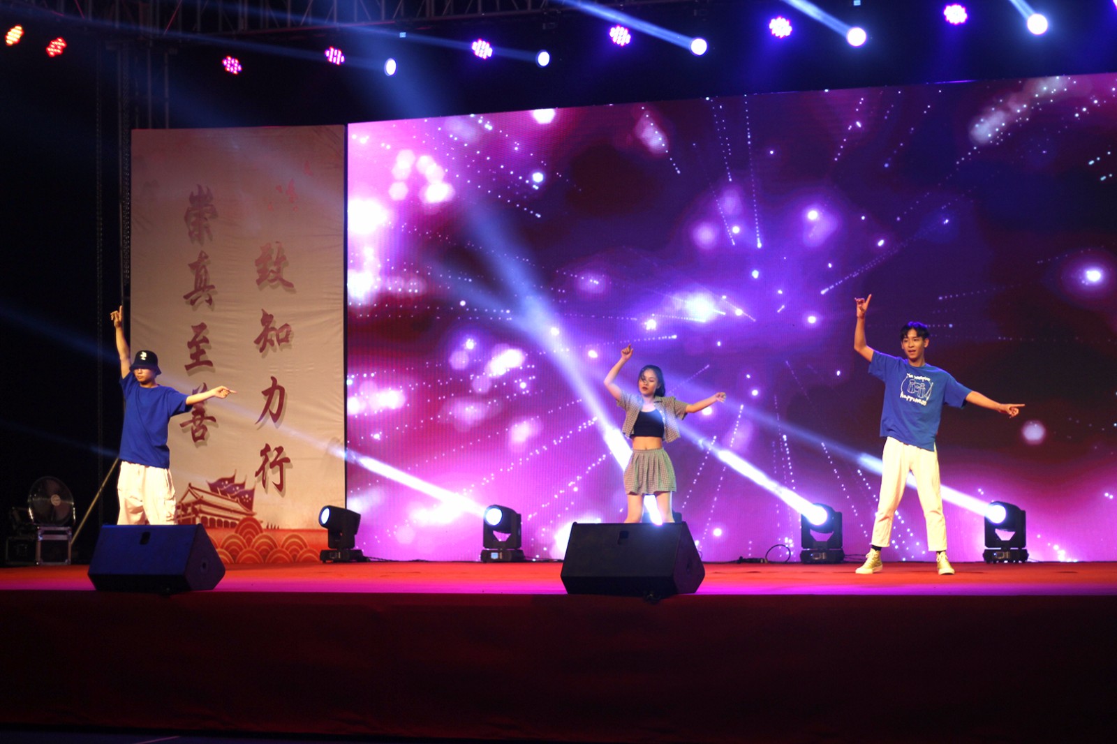 晚会在乐队演唱《龙的传人》中拉开帷幕,随后多才多艺的新生联袂献上舞蹈串烧和歌曲串烧。小品 《创业家族》带来阵阵欢笑;舞蹈《梨花又开放》和《傣悸》表达了浓浓的思乡情和民族特色;舞蹈《芒种》将中国元素和现代爵士进行了巧妙的融合;校林玲玲老师携手艺术团学生带给大家的歌伴舞《我的中国梦》和《我和我的祖国》将晚会推上了高潮;辅导员抽空编排的《小幸运》让场下同学激动万分,呐喊声此起彼伏。晚会在全场齐唱《歌唱祖国》中落下帷幕!