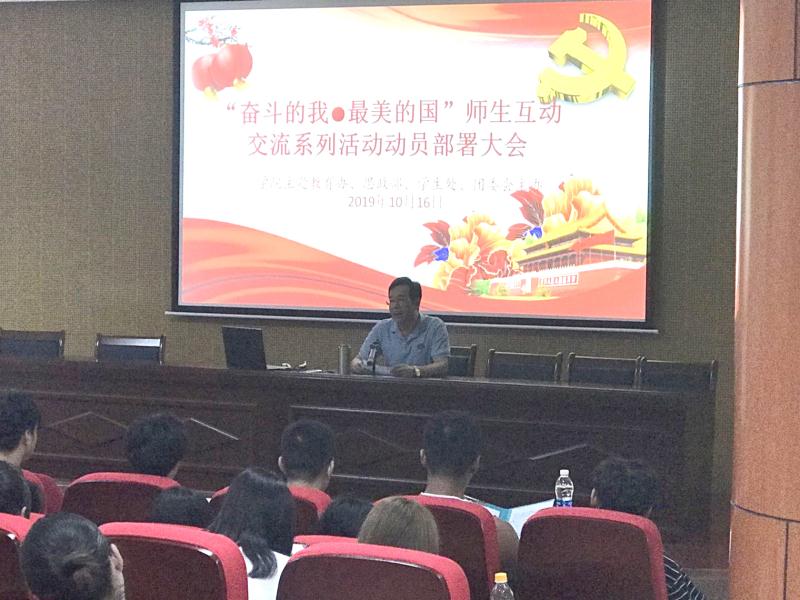 为扎实推进“不忘初心 牢记使命”主题教育活动深入开展,结合庆祝中华人民共和国成立70周年,大力弘扬以爱国主义为核心的伟大民族精神,kaiyun官网于10月16日下午在思源楼大报告厅举办以“奋斗的我·最美的国”为主题的师生互动交流系列活动。