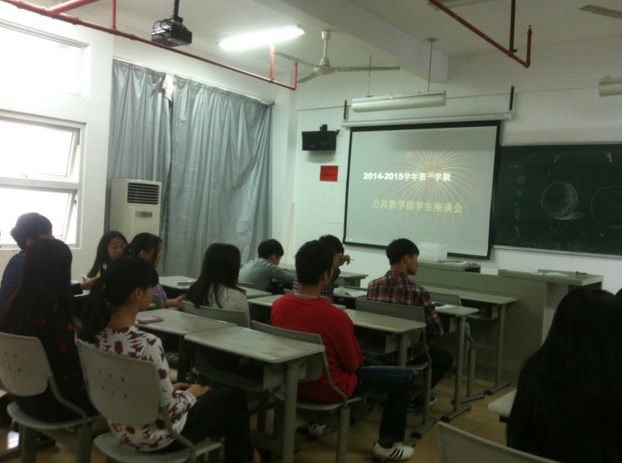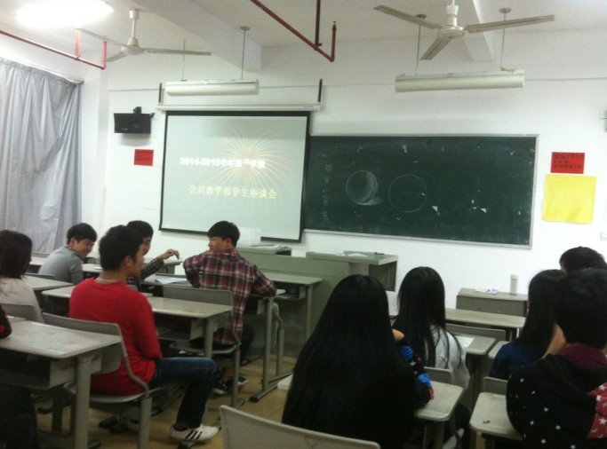 2014年11月4日,星期二,下午三点半,公教部在6#607举行2014-2015学年第一学期的学生座谈会!各位同学们踊跃发言。同学们畅所欲言,对课堂学习和班级学风提出了许多建议!