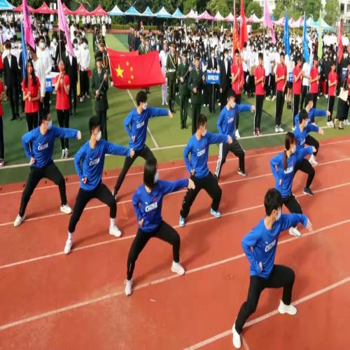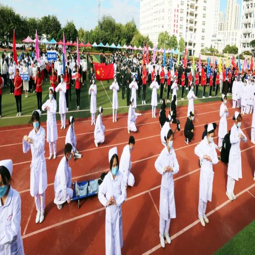 在开幕式上护理方阵以及体育方阵的同学结合自身专业特点,对表演内容进行创新,护理方阵的表演由医护人员赶跑新冠病毒情景剧与“谢谢你”手语表演组成,表达的对在新冠肺炎疫情中付出辛勤汗水的白衣天使的感谢。体育方阵的表演则是表演五步拳,借此提倡以“体”会友,强身健体的生活方式。